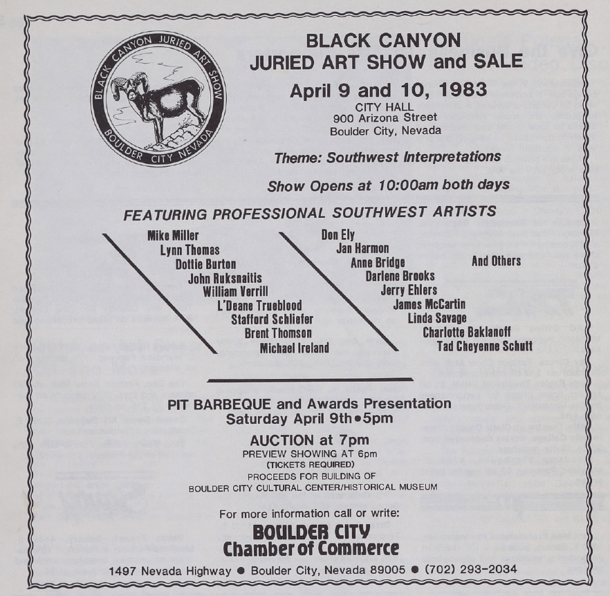 Black Canyon Juried Art Show 1983 Published January 3, 2019 at 882 × 862 in Exhibitions and media reports ← Previous 1983 – Black Canyon Juried Art Show Like Loading...