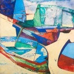- Boat Park – the artist’s treatment of fishermen’s boats on the beach. Oil on canvas, 1986, private collection.