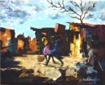 - Before the rains come. Oil on cotton, 11″ x 14″, circa 1990. Private collection.