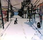 - East Queen Street and East Street. Oil on cotton, 30″ x 30″, 1995. Private collection.