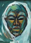 - African Theme. The symmetry of the face compelled the artist to depict the bust in like manner in this semi-abstract work. 1968, oil on canvas. Private collection