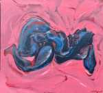 - Nude on pink sheet. Acrylic on linen, 24″x 22″, 2021. Private collection.
