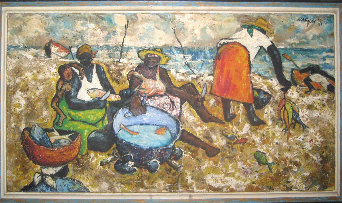 Seaside Fish Cook Published February 17, 2021 at 1200 × 712 in Early work ← Previous Next → Seaside fish cook. Oil and enamel on cotton, appr. 30″ x 42″, 1969. Like Loading...