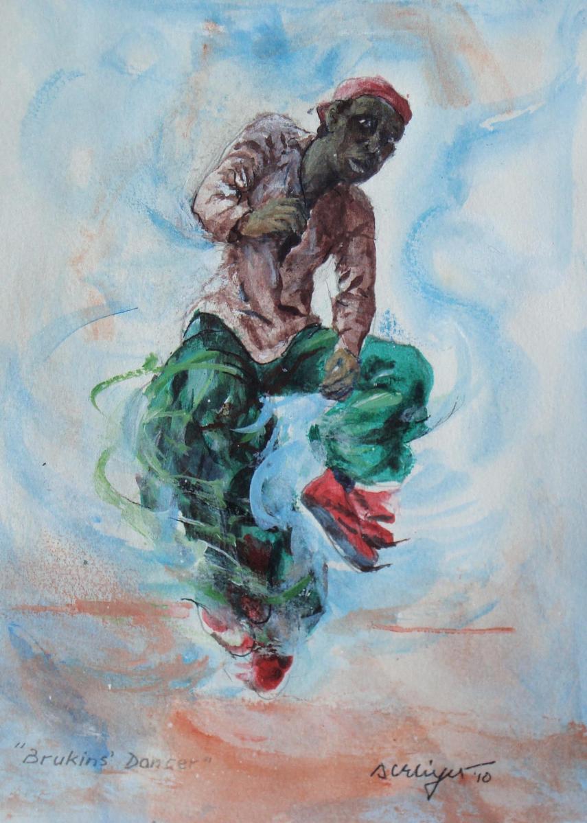 Brukkins Dancer Published March 18, 2012 at 1651 × 2316 in Cultural and spiritual themes ← Previous Next → Brukkins Dancer. 2010. Acrylic on paper. c12″x9″. Private collection. Brukkins – one of several traditional dances which have survived in but few communities in Jamaica. Like Loading...