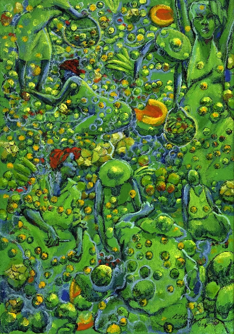 Jewels of the marketplace-s Published October 15, 2012 at 468 × 668 in Jamaicans at work ← Previous Next → Jewels of the Market Place – oranges, coconuts, and bananas float up between the vendors, who themselves appear to be suspended in mid-air. Acrylic on canvas, 2004, Private collection. [available as print] Like Loading...