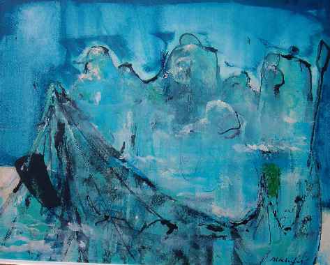 Lost seamen Published March 18, 2012 at 473 × 380 in Jamaicans at work ← Previous Next → Lost seamen. This image of a fishermen’s boat filled with ghostly images of men is a tribute to fishermen lost at sea. Private collection. c.2000, Acrylic on canvas. Like Loading...