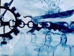 - From the Man & Metal series. Acrylic on cotton, 2002. Private collection. A continuum of subjugation is depicted by the interlocking images of the spinning wheel of the sugar mill, the chains of enslavement, the more modern image of the handcuff interlocking with the machete by its handle, and the saw-edged image suggesting torture and agony. The second layer deals with the sociological evolution of the Afro-Jamaican through the colonial – postcolonial eras, becoming more distinct in both facial features and clothing; articulating the change in periods as we enter modern times.