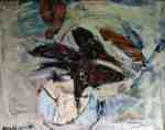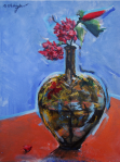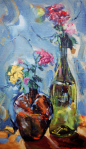 - Still life with flowers and bottles. Oil on cotton, 1990. Private collection.
