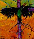 - Clipped Doctor Bird. 43″x52″. Mixed media on linen. Artist’s collection. Exhibited in the Annual National Exhibition 1998, alongside ‘Under the Bellevue Tree’. The Doctor Bird, a national symbol, is shown with its wings clipped, unable to rise – the artist’s symbolic treatment of Jamaican society.