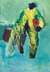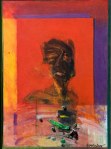 - Man in Flag. 40″x50″. Oil on cotton. Exhibited in the Annual National Exhibition 1987. The ambiguous image of a man trying either to free himself from the flag wrapped around him, or to tear it apart, symbolizes both the struggle of Jamaican society with its national identity, and its self-destructive tendencies.