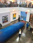The view from above, featuring Schliefer’s two entries as invited artist in the 2017 Biennial: Busta Backbone, 84″x105″, acrylic on cotton; Influx, 58″x66″, acrylic on cotton, both 2017.