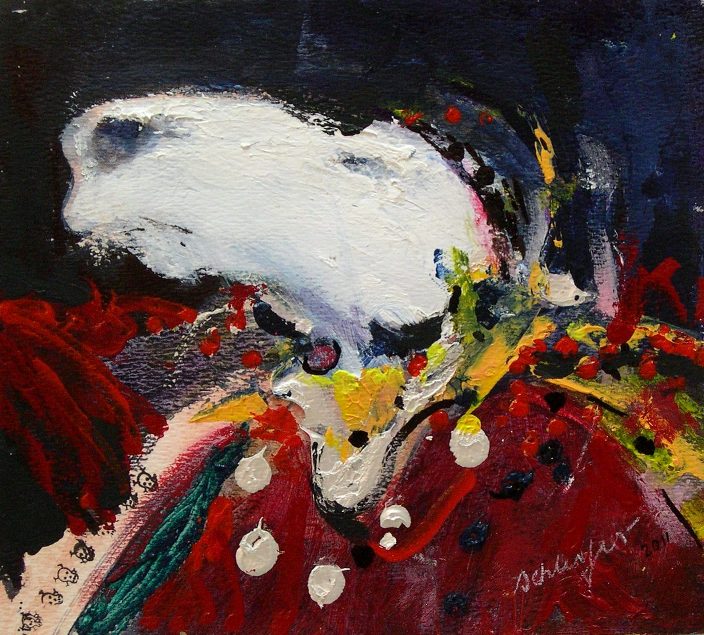 Jonkunnu Horsehead Published March 10, 2012 at 704 × 635 Jonkunnu Horsehead, acrylic on watercolour paper, c.9″x11″, 2011. Exhibited and sold at “New Work by the Masters: Alexander Cooper & Stafford Schliefer”, The Mutual Gallery and Art Centre, Kingston, Jamaica, 31 March – 29 April 2011.