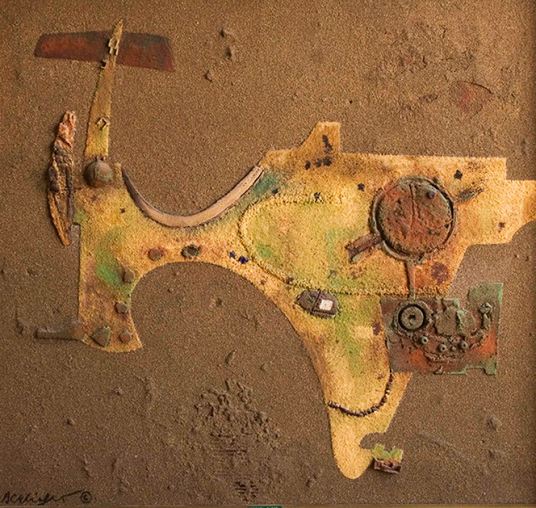 0_Anasazi Piece #2 Published March 11, 2012 at 776 × 736 in Desert Sand Paintings & South West Landscapes ← Previous Next → Anasazi Piece # 2, 1980, oil and sand collage on cotton, 35″x38″. Collection SCS. Like Loading...