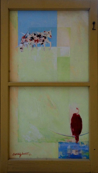PastureWindow-SpottedCows-RedBull Published March 18, 2012 at 383 × 672 in Desert Sand Paintings & South West Landscapes ← Previous Next → Pasture Window, Spotted Cows, Red Bull. Having found an old discarded window frame while wandering in the Arizona desert, the sudden inspiration to imprint a vision of grazing cattle appeared. 1980, oil on linen, 37″x20″. Collection SCS. Like Loading...