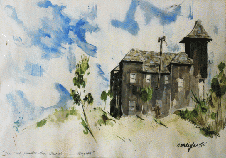 Powder-box Church Published March 18, 2012 at 770 × 538 in Desert Sand Paintings & South West Landscapes ← Previous The old powder-box church – Jerome. Watercolour, 1975, collection SCS. Like Loading...